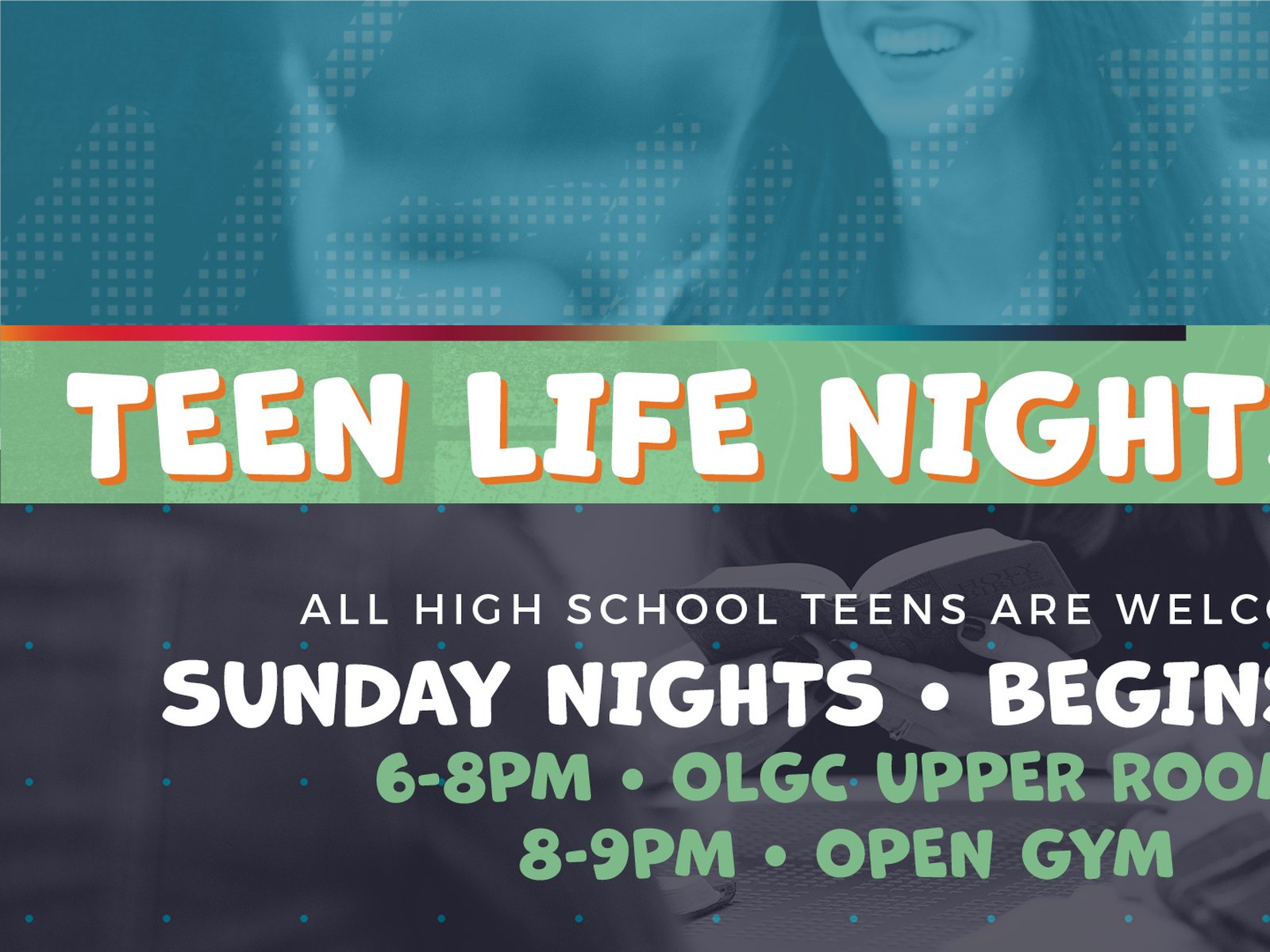 Groups meet Sunday evenings from 6 - 8 pm in the Upper Room at Church. Open gym afterwards. Bring a friend!
