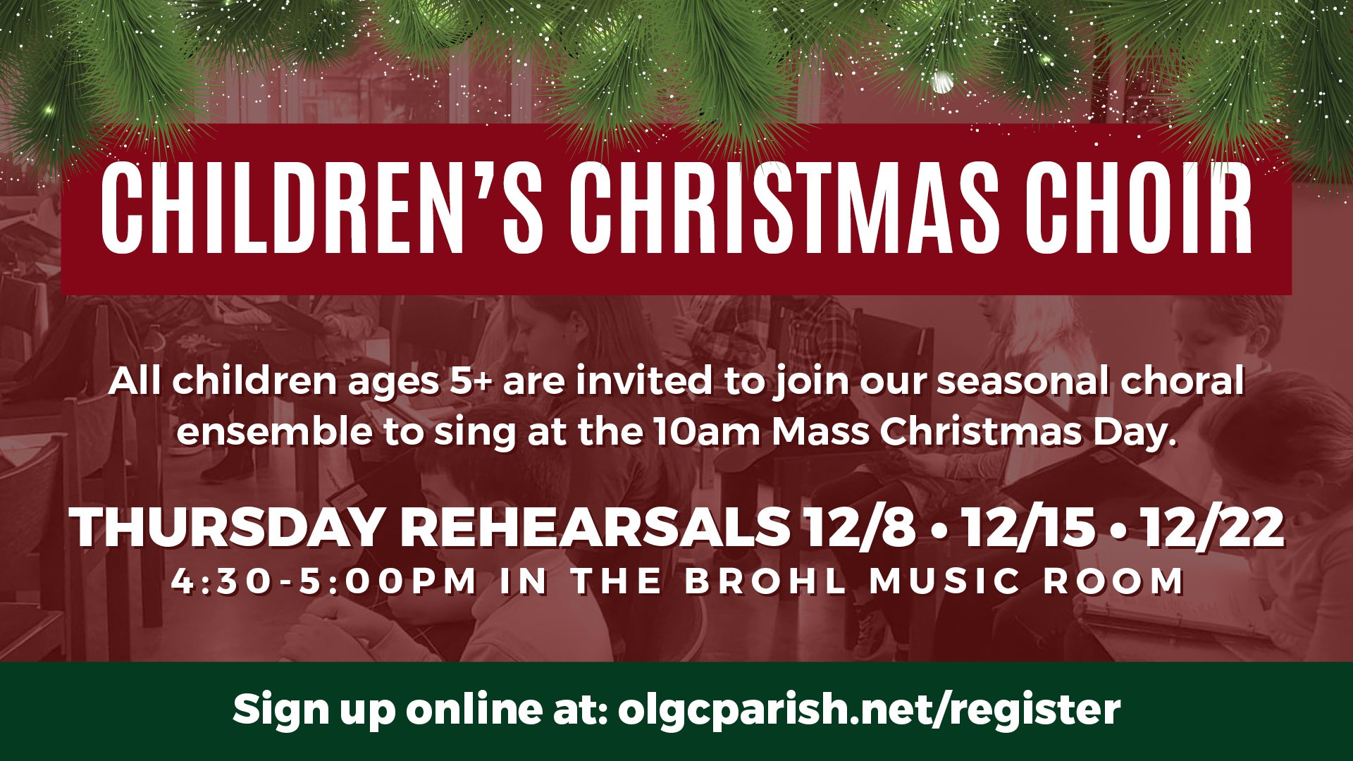 | A seasonal choral ensemble for children ages 5+ to prepare to sing at the 10 am Mass Christmas Day. |