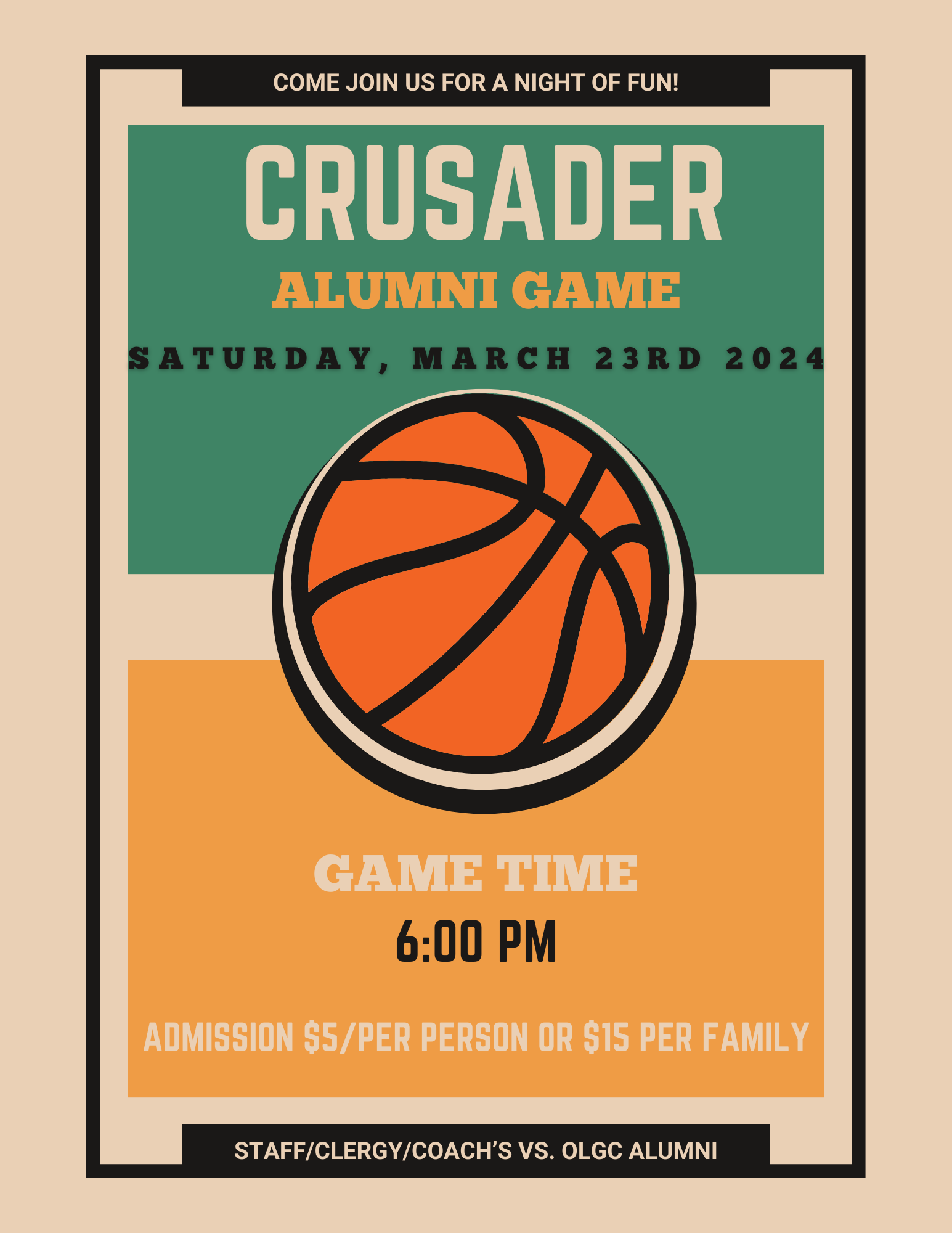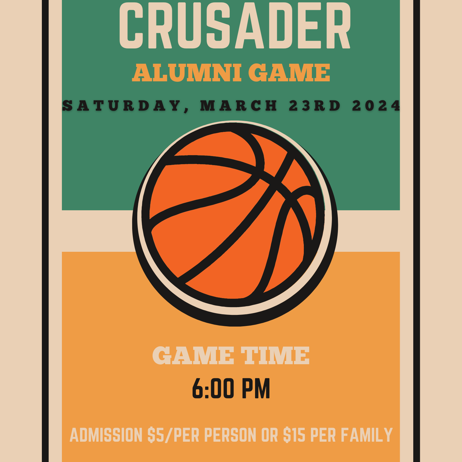 Calling all former Crusader athletes! We want you to play in our 1st annual Crusader Alumni Basketball Game. Use the QR code or link here to sign up to play: https://forms.gle/xfSV8mzcNmtPZPgr9