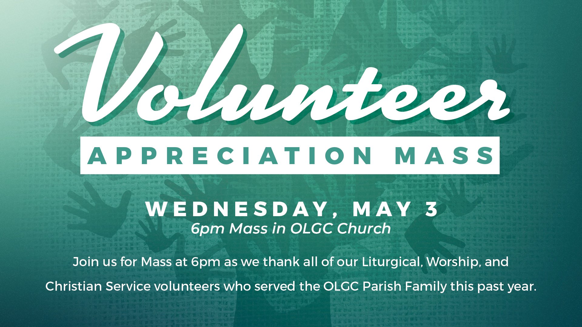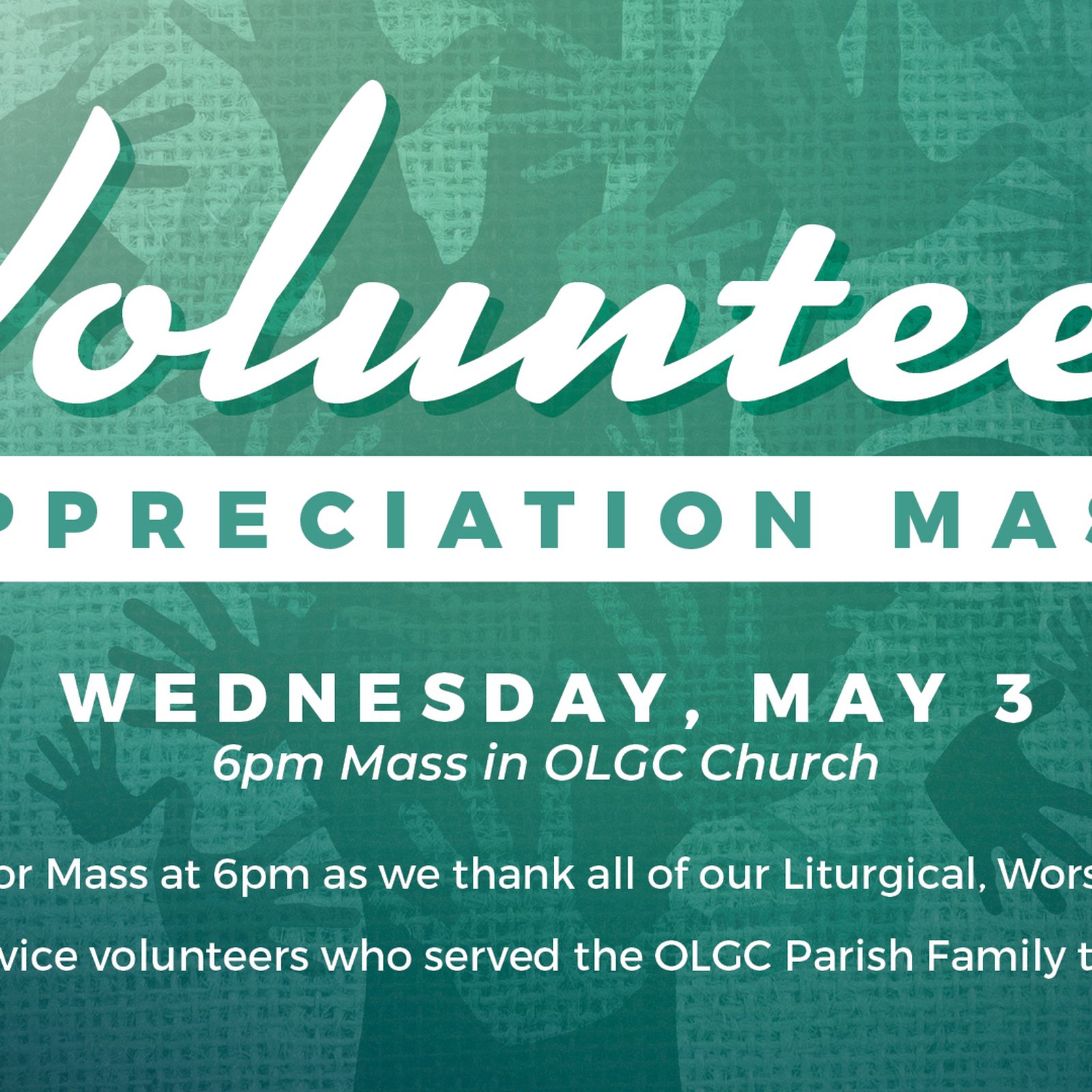 Join us for Mass at 6pm as we thank you, our Worship and Christian Service volunteers who served the OLGC Parish Family this past year.